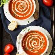 I love cream in tomato soup, but you could use Greek yogurt for a healthier alternative if you still want to get a creamy end result, just add in a pinch of sugar to help give it that hint of sweetness.