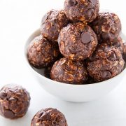 These remind me a lot of a no-bake cookies, but these are far healthier. It might have something to do with the fact that they don’t have 2 cups of sugar and a stick of butter. So, when you get that chocolate or dessert craving, just pop of few of these and you’re craving will most definitely be satisfied and you won’t have to feel guilty about it. These are also perfect just for a midday snack or even a quick on the go breakfast.