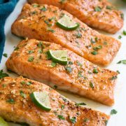 This baked salmon recipe requires minimal ingredients and has such a quick prep. Plus, you’ll love this flavor pairing of sweet brown sugar combined with bright and tart fresh lime to compliment the rich and buttery flavor of the salmon.