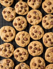 These banana chocolate chip cookies taste a lot like banana bread, but in a soft and slightly chewy cookie form. The great thing about these is that they use about half the butter of a traditional oatmeal cookie thanks to the banana.