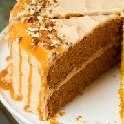 This pumpkin cake recipe is set to impress! When you want to go all out two flavors that are sure to satisfy are nutty browned butter and rich salted caramel and they pair amazingly well together. Plus they are simply divine when combined with the flavor of pumpkin pie spice!