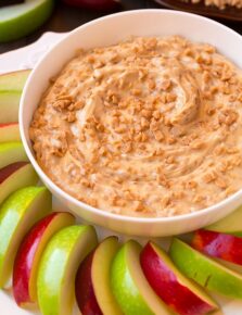 The ultimate apple dip! It’s rich, it’s sweet, it’s tangy and it’s the perfect compliment to fresh apples. Sure to be a crowd favorite and you’ll love how easy it is to make!