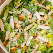 Chicken Caesar Salad is a must in the recipe file and this one definitely does not disappoint! Plus it’s made healthier by using mostly Greek yogurt in part for the mayonnaise and olive oil in the dressing. This salad is perfectly flavorful and deliciously satisfying with lean chicken breasts for protein, everyone will love this!