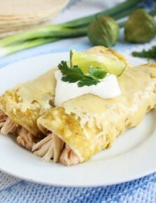 These enchiladas are restaurant worthy! They're filled with shredded chicken (or use beef, pork or veggies), cheese and homemade enchilada sauce. Then they're rolled and finished with more cheese and sauce. Who could resist?