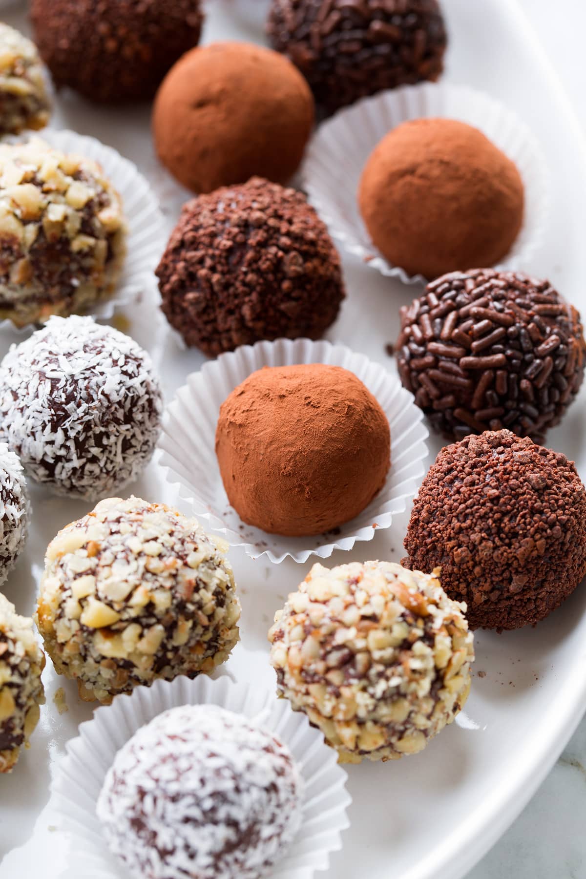 - Melted chocolate: If going this route, be sure the rolled truffles are well chilled before dipping into melted chocolate.