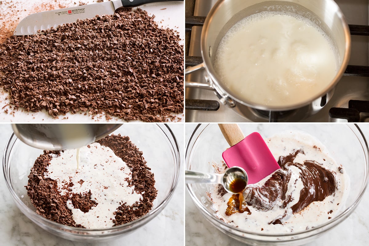 - Chocolate bars: Be sure to chop chocolate very small so it will melt through just from the residual heat of the hot cream.
