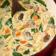 Creamy Chicken, Spinach and Mushroom Tortellini Soup