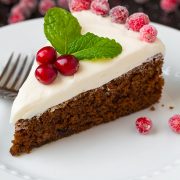 Gingerbread Cake with Cream Cheese Frosting is a perfectly spiced, moist cake that features all the best flavors of the holiday season. Gingerbread cake will have you forgetting all about the dry gingerbread cookies—especially when you try the whipped cream cheese frosting and sparkling cranberry garnish topping. This holiday dessert is perfect for Thanksgiving and Christmas parties or a holiday brunch!