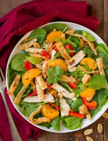 The best part of this salad is the marinated and grilled chicken. I enjoyed it so much that I will likely just start making it all it’s own on occasion. It has the perfect blend of flavors and the marinade was quick and easy to throw together. Another great thing about this salad is the cabbage, how often do we get caught making salads over and over with the same types of lettuce. It’s nice to have a little variation. Summer is salad season so keep this recipe handy and try it soon!