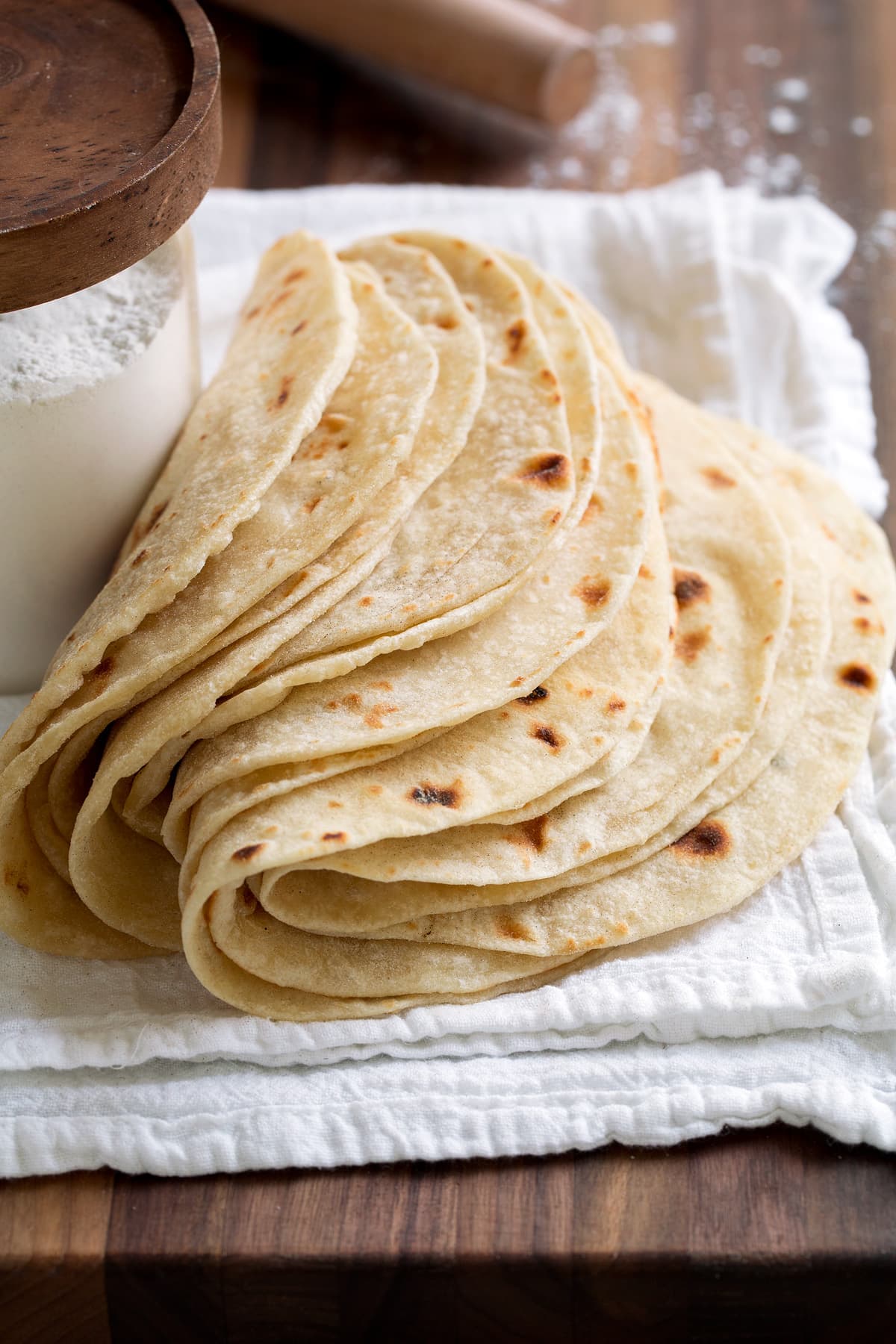 - Vegetable oil – if you’d like, you could swap to a different oil for a healthier option such as light olive oil. I’ve tested different fats in the past (butter, lard, shortening) but vegetable oil always seems to make softer and more moist tortillas.