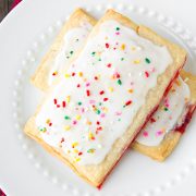 These Homemade Pop-Tarts are so much better than the store-bought kind! They’re filled with strawberry jam and finished with a sweet and simple vanilla icing.
