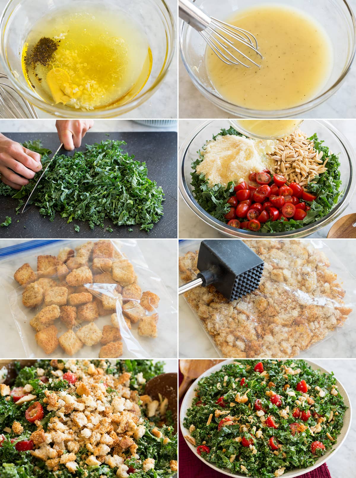 - Toss with dressing: Whisk dressing again then pour over salad. Toss well to evenly coat. Finish with croutons just before serving (you can lightly toss them into salad if desired).
