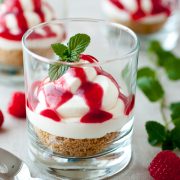 No Bake Cheesecake Mousse – the ultimate easy dessert! You’ll be shocked at how quickly this delicious treat comes together. Layered with buttery crumbled graham crackers, a rich fluffy cheesecake mousse, and finished with a bright raspberry sauce—it’s incredible.Â