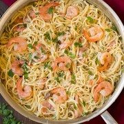 One Pan Creamy Shrimp Linguine is the perfect recipe for a hectic day! It’s so easy to make, deliciously flavorful and perfectly creamy. And you can’t go wrong with that pasta, parmesan and shrimp combo!