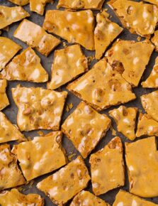 Homemade Peanut Brittle that is exactly like Grandma made! This tempting candy is perfectly crisp and crunchy, beautifully caramelized, deliciously buttery and brimming with rich roasted peanuts dotted throughout. Here you’ll learn all the tips to successfully make it.