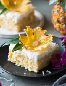 I’ve tried plenty of pineapple upside down cakes and this one is by far my favorite. It doesn’t use any cake mix, it’s all about being made from scratch. And the best part is the fresh pineapple!