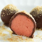 These truffles can be made without the raspberry extract if you’d prefer not to purchase it, just note the raspberry flavor won’t be as strong. These truffles are equally amazing covered in white chocolate as they are covered in milk chocolate, so take your pick. Be sure to store you truffles in the refrigerator.