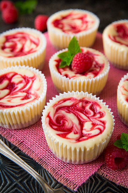 Raspberry Swirled Mini Cheesecakes