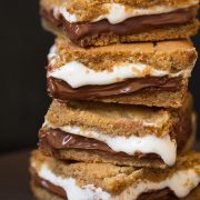 These S’mores Bars make it easy to enjoy the classic campfire treat year-round! Buttery graham cracker cookies are sandwiched with melted milk chocolate and marshmallow creme. The ultimate summer dessert!