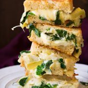 Do we need much more in life than this epically delicious Spinach Artichoke Grilled Cheese Sandwich? This is one of my favorite grilled cheese sandwiches, maybe it has something to do with the fact that I’m in love with the spinach artichoke combo (have you made my Spinach Artichoke Pizza yet? Or tried my Skillet Chicken with Creamy Spinach Artichoke Sauce. Oh and let’s not forget about my easy Spinach Artichoke Dip recipe)! And I guess I should say it’s not just the spinach artichoke blend that I love but the cheesy spinach artichoke that blend I love. It’s a combination that was made for grilled cheese sandwiches.