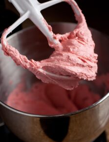 This is definitely my new favorite strawberry buttercream frosting and I know I will make it time and time…and time again. If you are lucky enough to have any frosting left, spread it on graham crackers for a delicious treat.