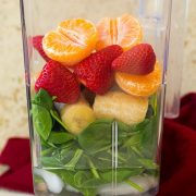 The easiest strawberry spinach green smoothie! Made with flavorful strawberries, bright mandarin oranges, nutritious baby spinach and sweet bananas. It’s a smoothie recipe you’ll have on repeat!