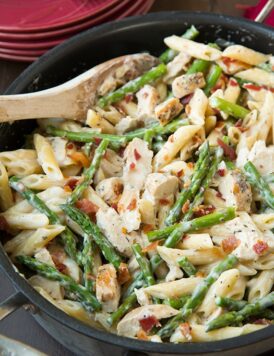 One-Pan Creamy Lemon Pasta with Chicken and Asparagus