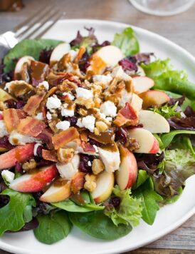 Apple Feta Salad with Chicken, Bacon, Walnuts, and Balsamic Vinaigrette