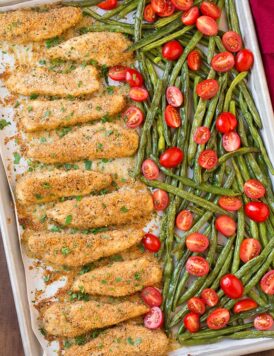 Sheet Pan Garlic-Parmesan Chicken Tenders with Veggies