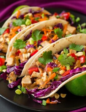 Rainbow Spring Roll Bowls with Shrimp or Chicken and Peanut Sauce