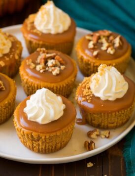 Mini Pumpkin Cheesecakes with Salted Caramel Sauce