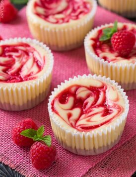 Raspberry Swirled Mini Cheesecakes