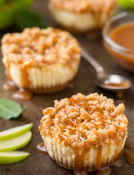 Caramel Apple Mini Cheesecakes {with Streusel Topping}