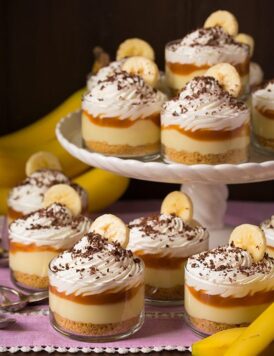 Mini Banana Cream Pies with Salted Caramel Sauce