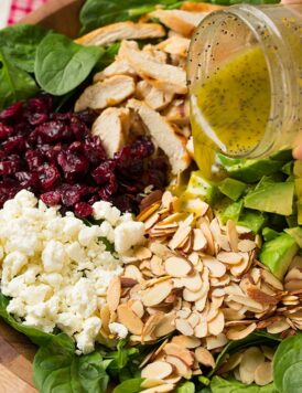Cranberry Avocado Spinach Salad with Chicken and Orange Poppy Seed Dressing