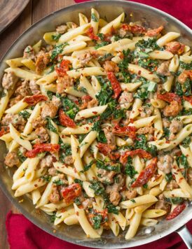 Creamy Kale and Turkey Sausage Pasta with Sun Dried Tomatoes