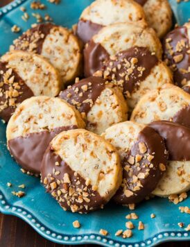 Chocolate Dipped Toffee Pecan Shortbread Cookies