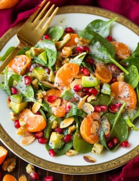 Mandarin Pomegranate Spinach Salad with Poppy Seed Dressing