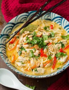 Thai Chicken made with creamy coconut milk, vibrant fresh lime, a delicious blend of spices, a hint of sweetness, and Sambal Oeleck for an exciting spicy kick!