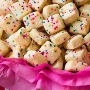 Crisp and buttery, rainbow speckled mini shortbread squares. These are fun to make and everyone always loves them! They keep really well, I like to freeze them and put some in my kids school lunch. Yield: About 336 itty bitty bites.
