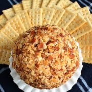 Place almonds on a large plate or cutting board, set aside. Combine remaining ingredients in large mixing bowl. Blend well with a fork. Form mixture into a ball and roll ball over almonds coating all sides. Chill in refrigerator overnight. Serve with crackers.