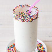 This Birthday Cake Milkshake Recipe uses just three ingredients and comes together in under 5 minutes. This is the best homemade milkshake I've ever made!