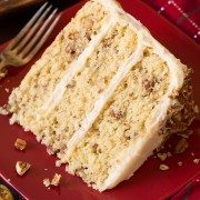 The best butter pecan cake recipe! It's brimming with a rich buttery flavor and swirled with plenty of pecans. It's moist and sweet and a perfectly tempting cake fit for any occasion!