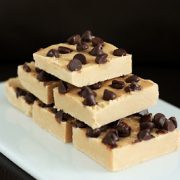 Press thickened fudge into a buttered 8x8 dish and gently press chocolate chips onto fudge. Refrigerate fudge about 30 minutes until fudge is set and chocolate is hardened. Cut into squares and store in an airtight container.