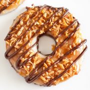 Pour 1/2 cup desiccated coconut into a shallow bowl and set aside. Heat caramels, 2 1/2 Tbsp milk and a pinch of salt in a medium saucepan over medium heat, stirring constantly until melted and smooth. Reduce temperature to warm, add remaining 1/4 cup desiccated coconut to melted caramel and mix to combine. Leave caramel mixture over warm heat (as you coat cookies), stirring caramel occasionally. Working one cookie at a time, spread about 1 tsp caramel mixture around the top of cookie, then immediately dip caramel coated side of cookie into the bowl of desiccated coconut then set on parchment paper (or cooled cookie sheets) and allow caramel to set.