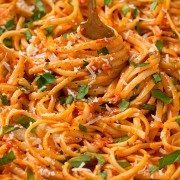 A creamy, hearty pasta dish packed with roasted red pepper flavor and tender pieces of grilled chicken breasts. A recipe the whole family can agree on!