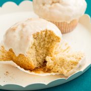 In a mixing bowl whisk together powdered sugar and 1/4 tsp nutmeg. Add in 3 Tbsp eggnog and rum extract and whisk to combined, mix in an additional tablespoon eggnog as needed (you want glaze to be fairly thick so it doesn't just run off).