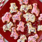A childhood favorite, and this homemade version is so much better than store-bought. Buttery, mini animal shape, shortbread-like cookies are topped with a simple glaze and finished with colorful sprinkles for a cookie people of all ages will love!