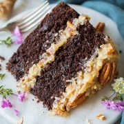 This is the BEST German Chocolate Cake! It's perfectly rich and chocolatey and no one can resist that sweet and sticky coconut pecan topping. A delicious cake for any occasion!