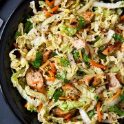In a mixing bowl (or 2-cup liquid measuring cup), whisk together soy sauce, ginger, canola oil, hoisin sauce, sesame oil, Sriracha and 1/2 tsp salt (adding more salt to taste as desired, original recipe calls for 1 tsp salt, I added 3/4 tsp and I still thought that was too much).